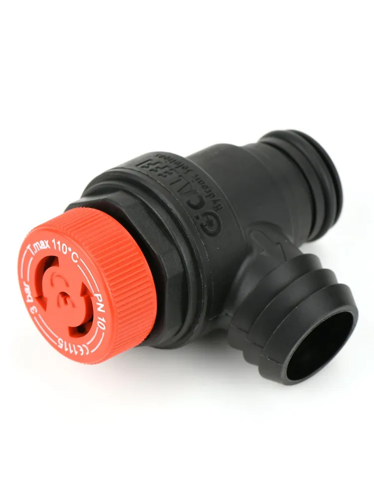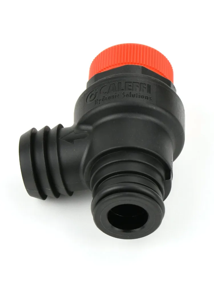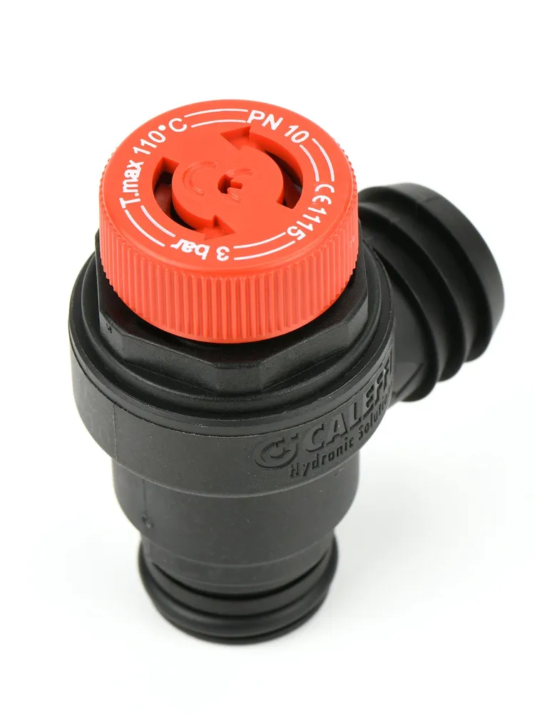 Caleffi plastik gövdeli saç sekmanlı geçme tip emniyet ventili, Ferroli ve Bosch kombilerde sistem basıncı 3 bar seviyesine ulaştığında fazla suyu otomatik tahliye ederek kombi, eşanjör ve hidrolik devreyi aşırı basınca karşı korur.