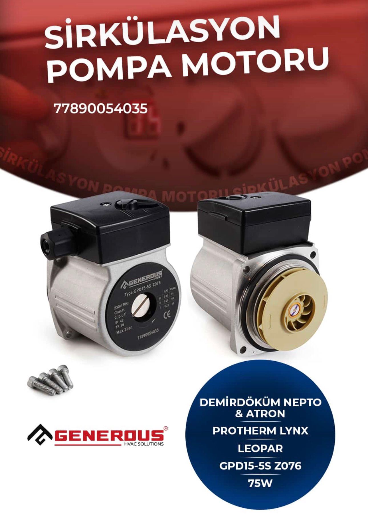- Marka: GENEROUS Model: SP33Sirkülasyon Pompası Generous Atromıx Eca Premıx Protherm Gpa15-6 Iı Z195 Motor