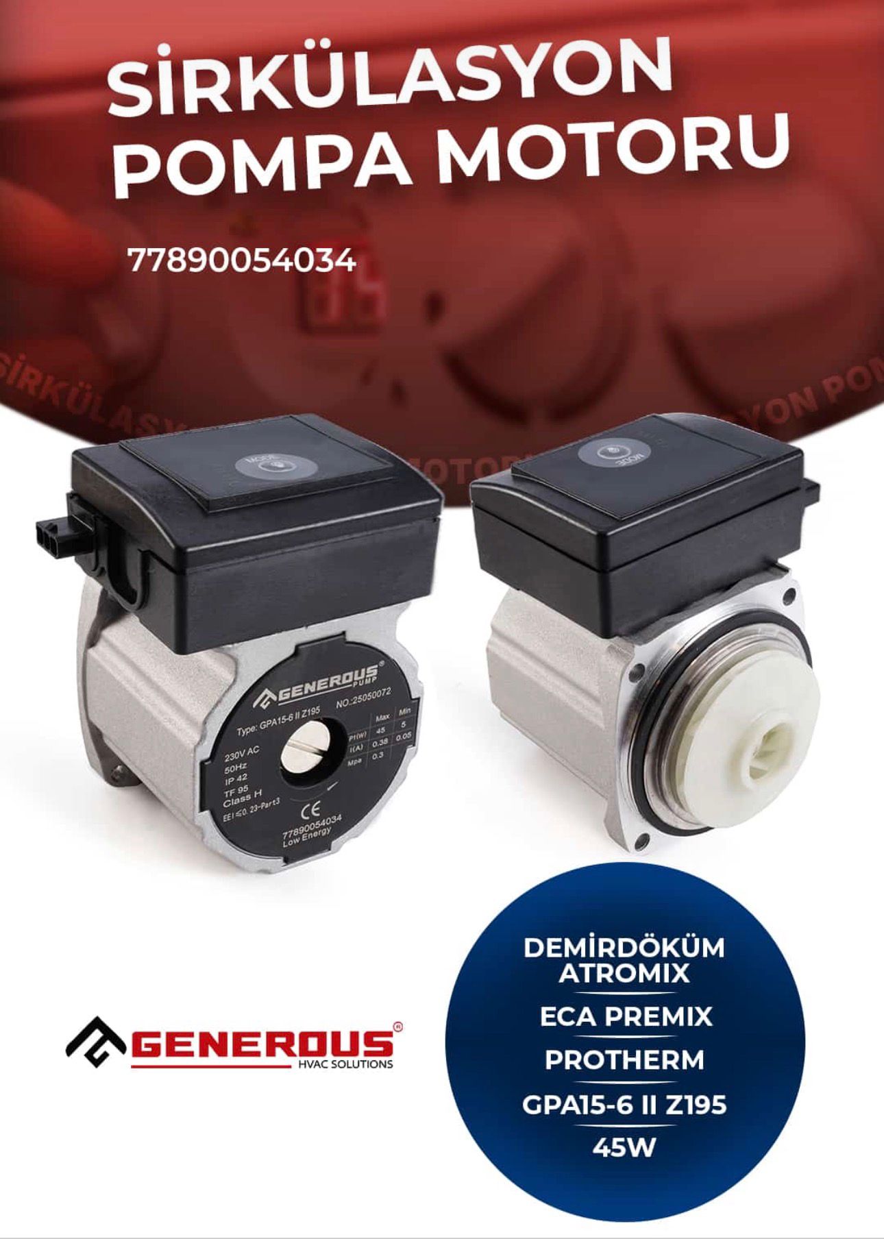 Sirkülasyon Pompası Generous Atromix ECA Premix Protherm GPA15-6 II Z195 Motor